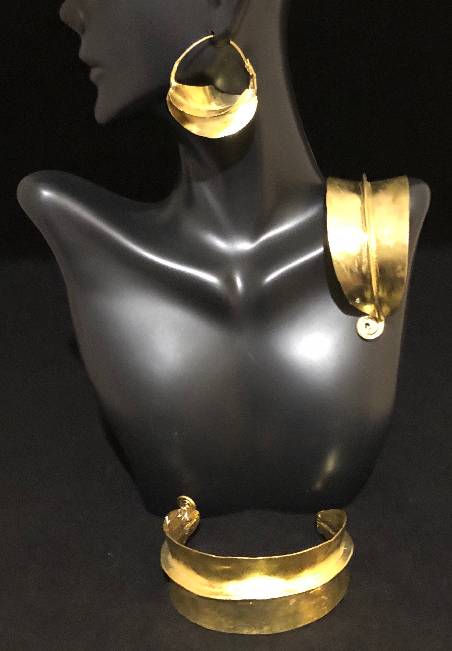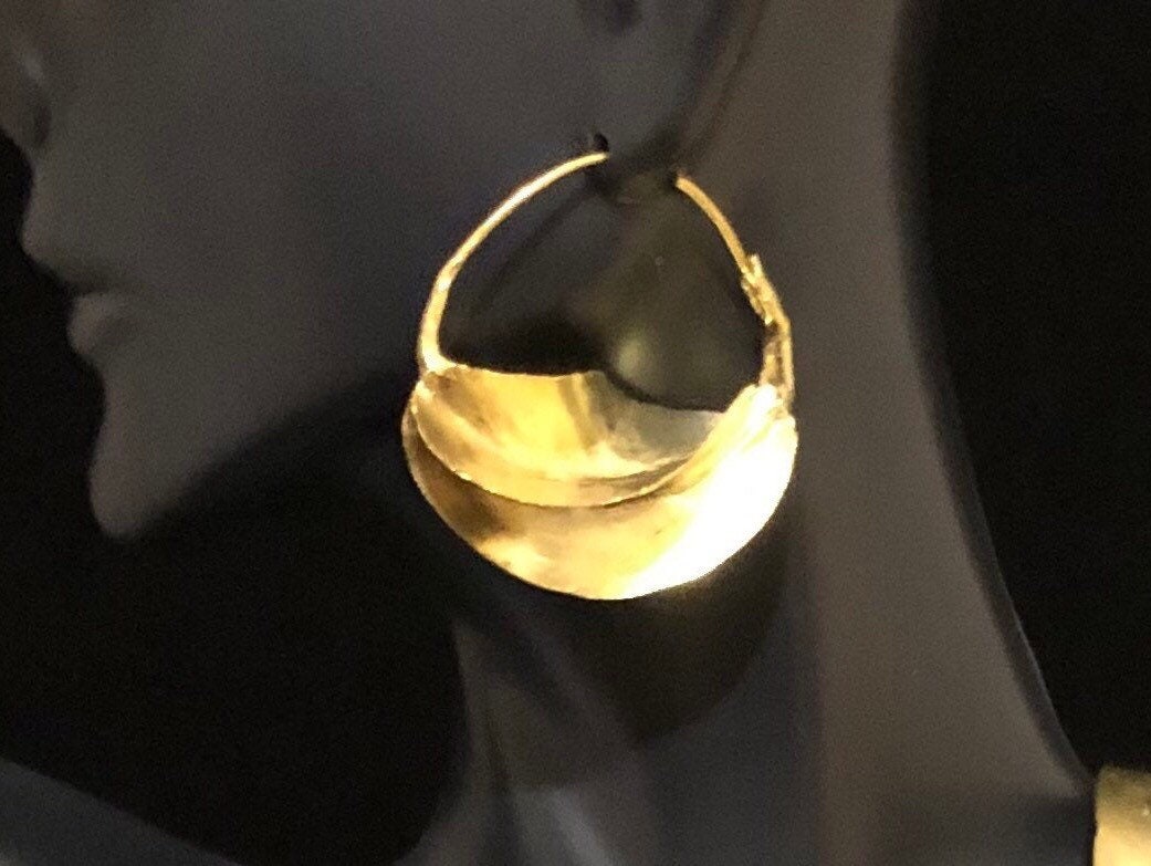 Available in sizes from 0.75" to 5". Truly a style for an Empress or a Warrior Queen. Handcrafted, no two pair are alike. They measure approximately 1 1/2 inches. Gold alloy.