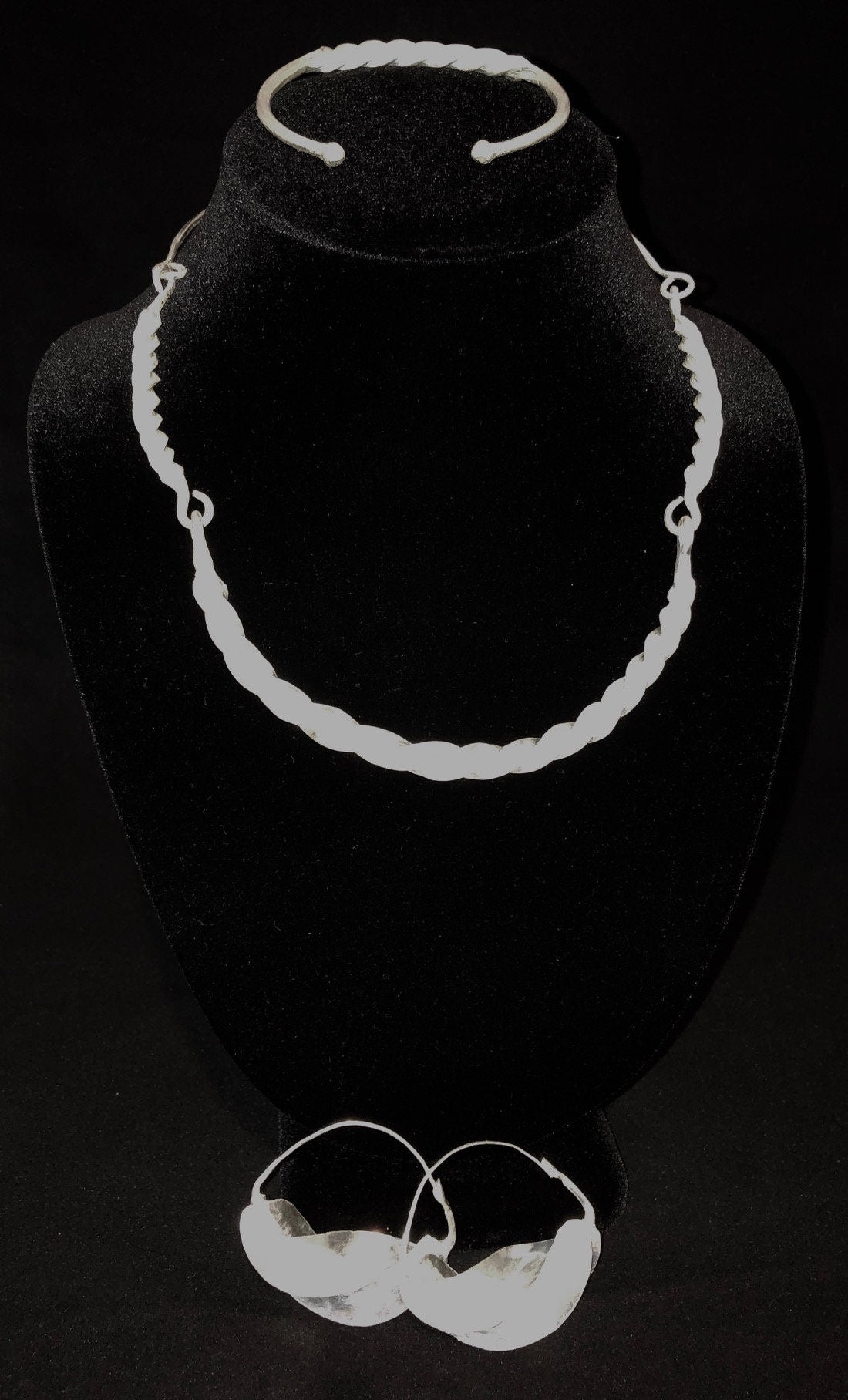 These are beautiful Fulani Silver Twist Earrings, extra large. The Fulani are one of the largest ethnic groups in Africa, stretching from West and Central Africa and as far as Western Sudan. They are chiefly nomadic people and herdsmen. Precious metals are found throughout the Continent of Africa and historically, platinum, silver and gold as well as bronze and brass were used to craft lovely pieces.