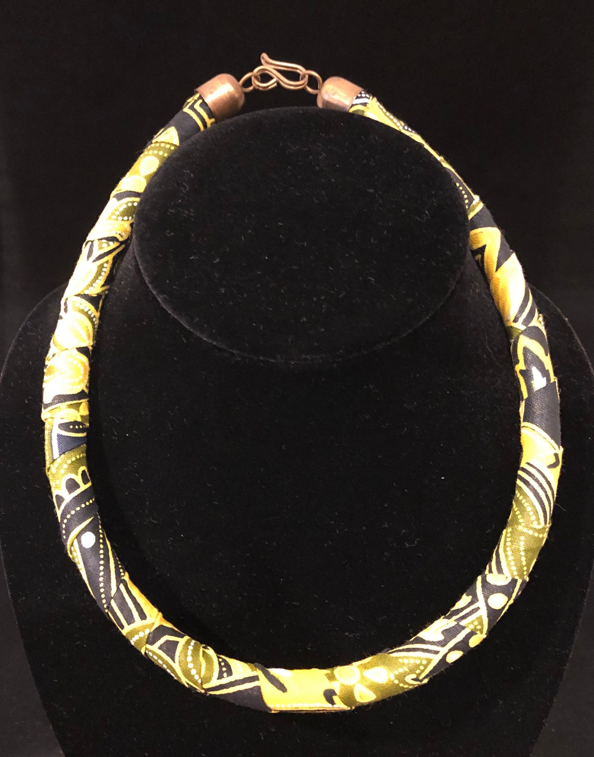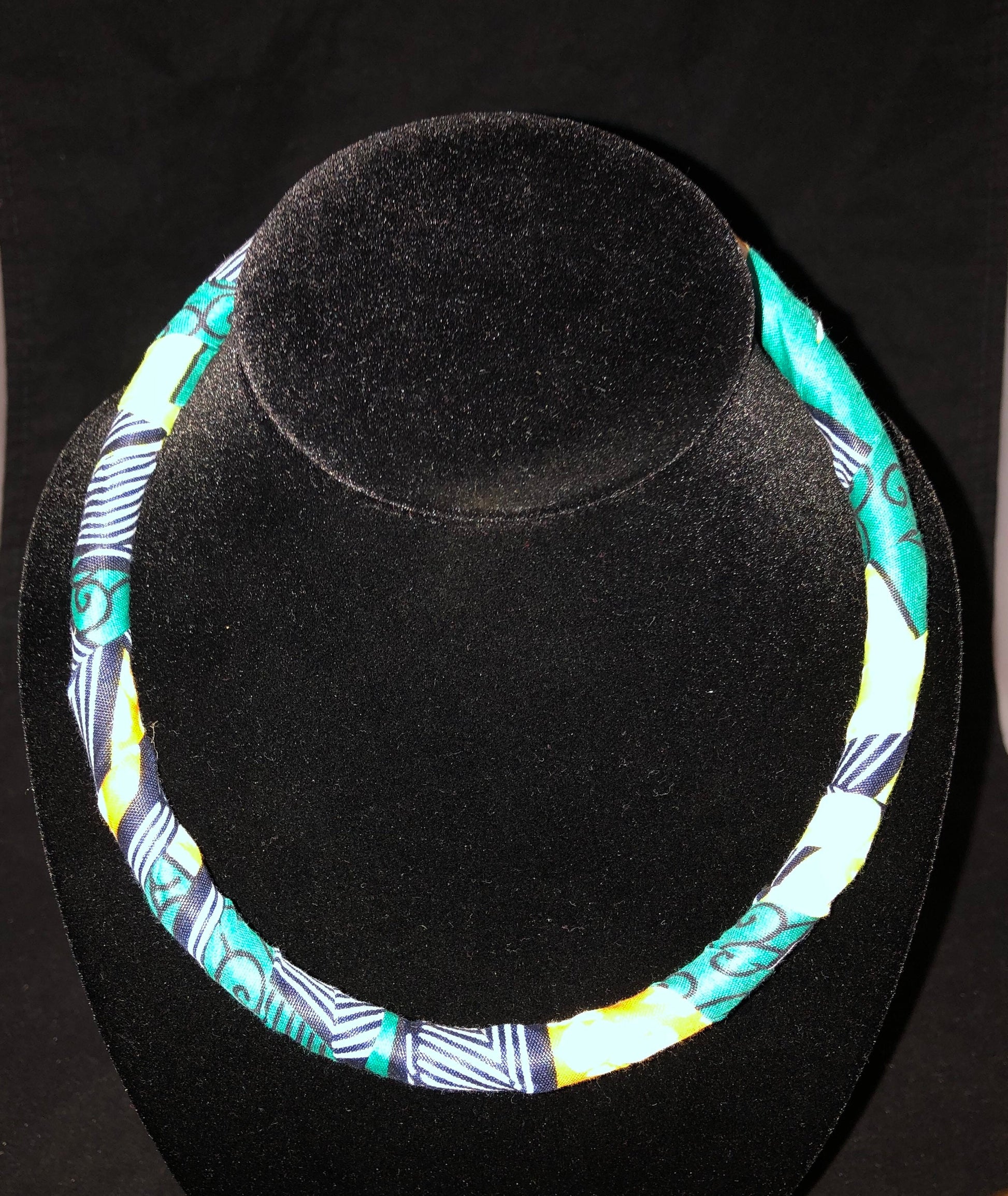 It is traditionally worn draped around the head, chest or waist, or as a baby sling. This unique necklace is made from Kitenge fabric and will be a beautiful, colorful addition to your wardrobe.