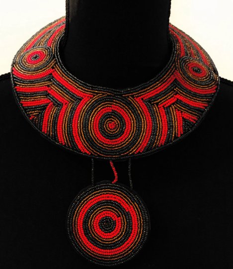 Tiye's Favorite Red, Black and Gold Beaded Leather Necklace.
