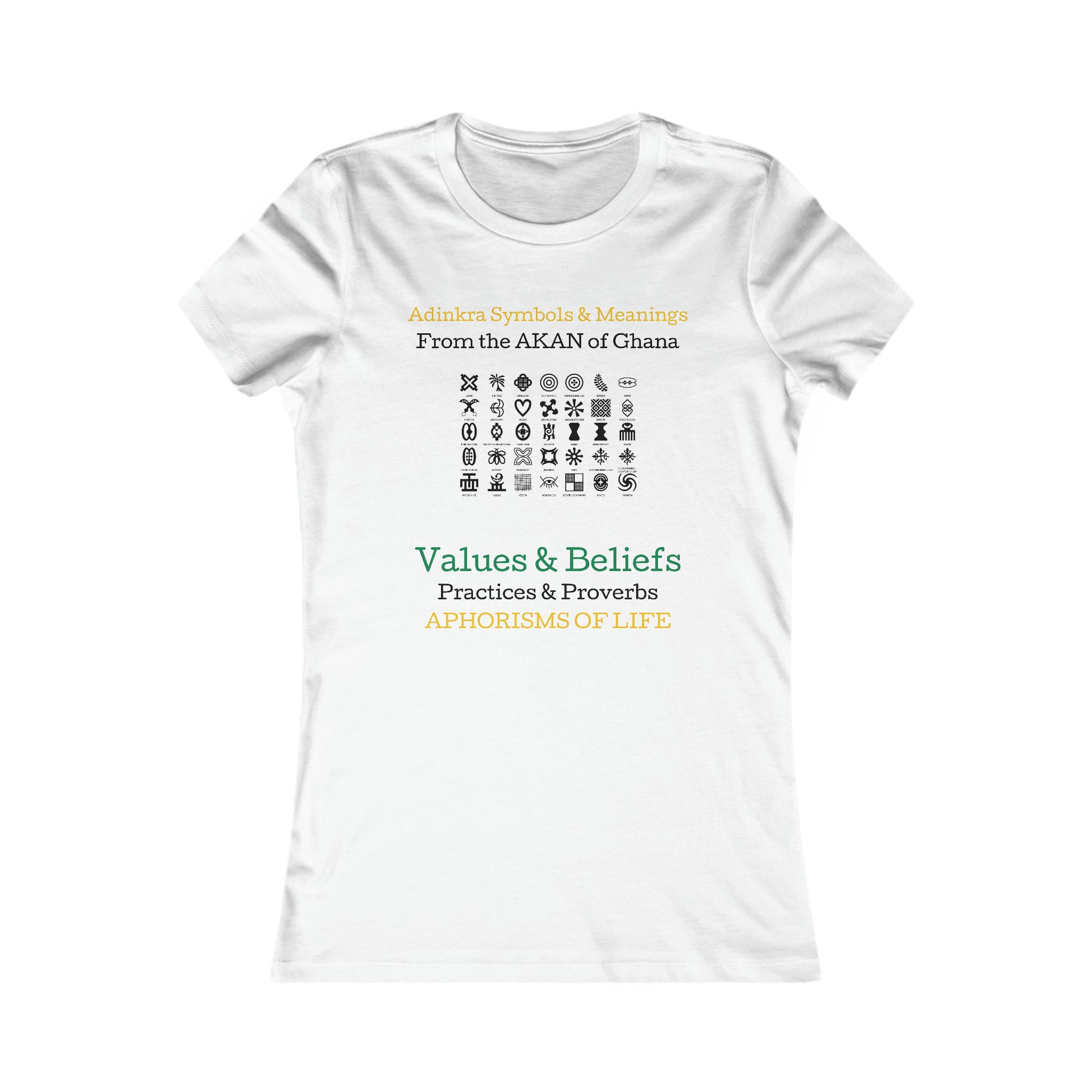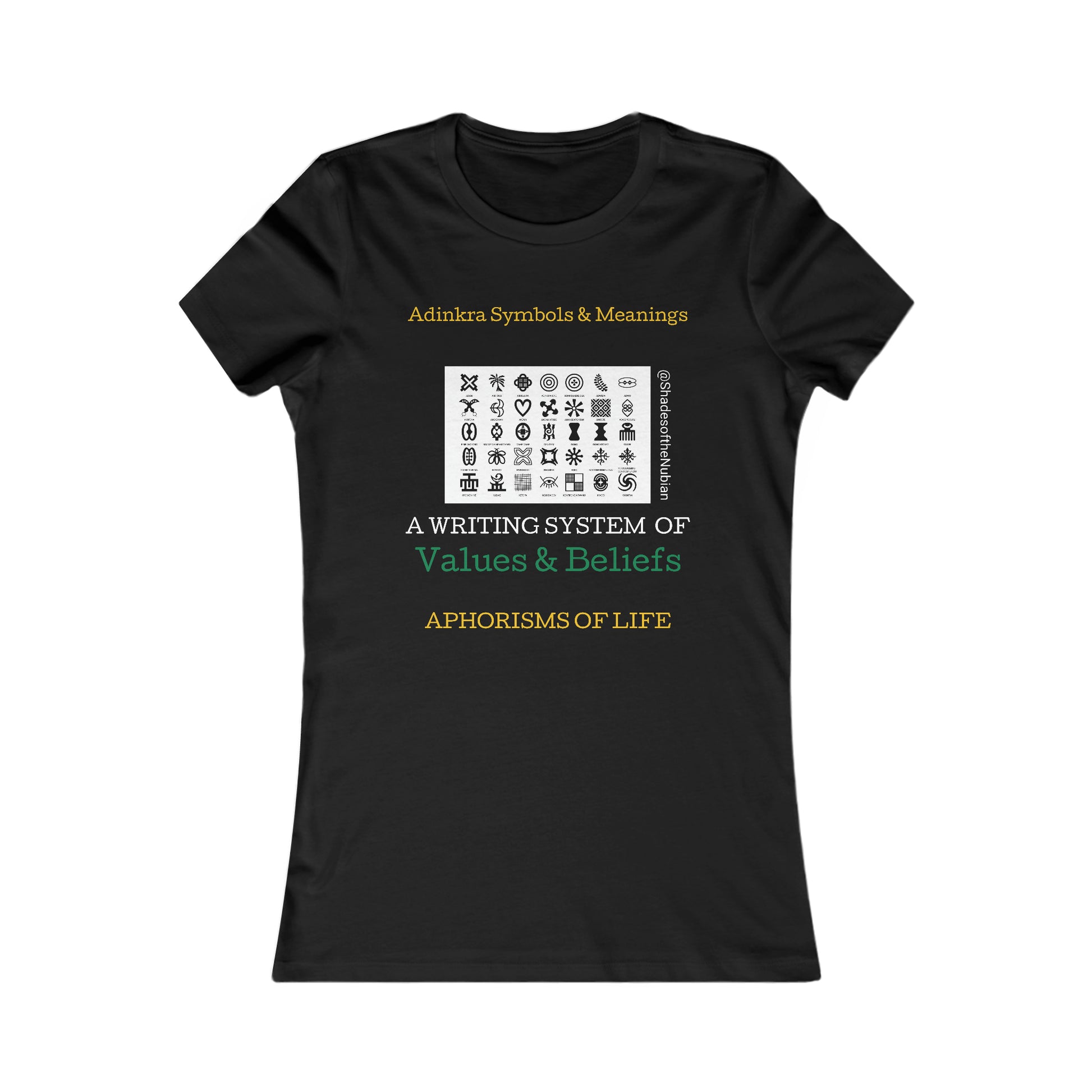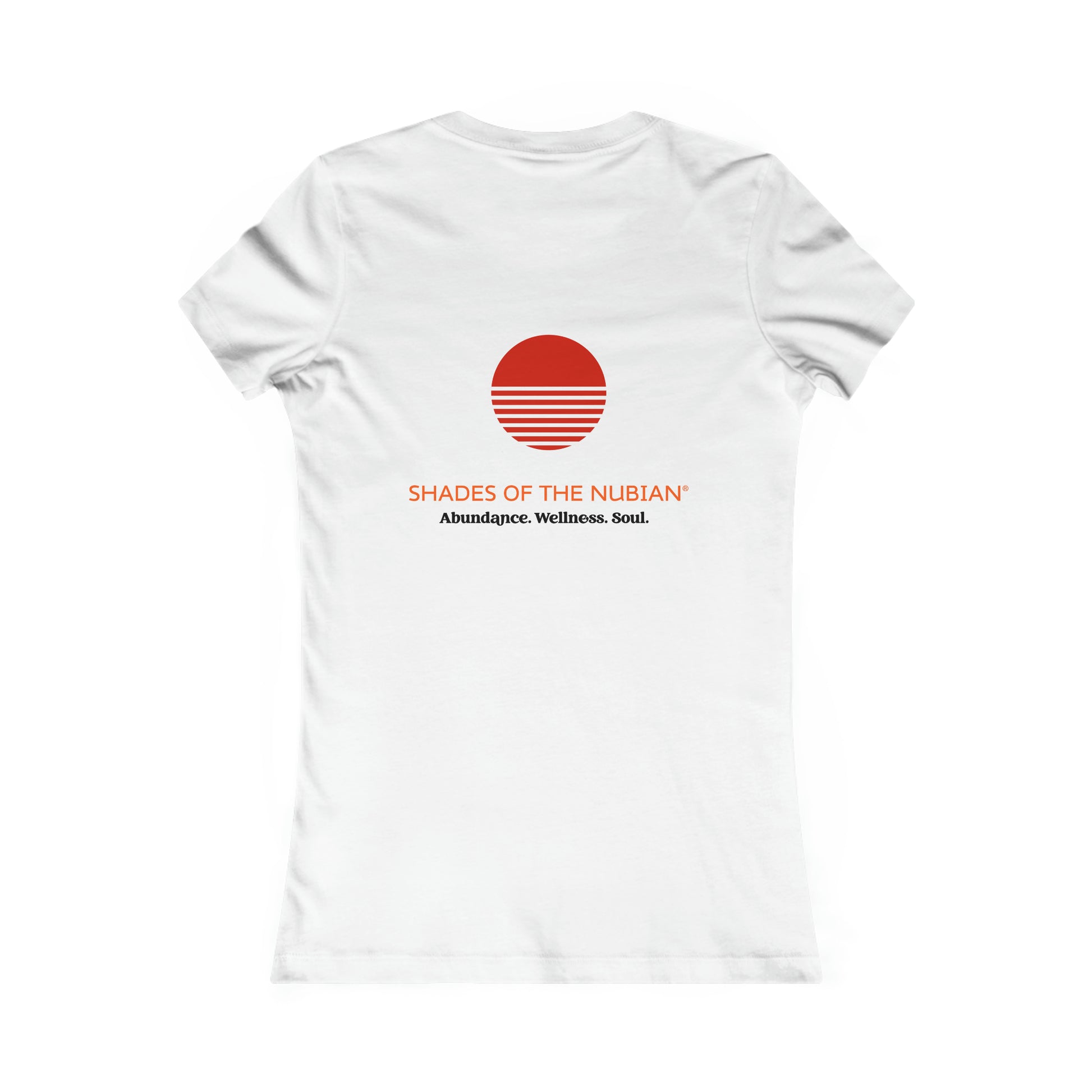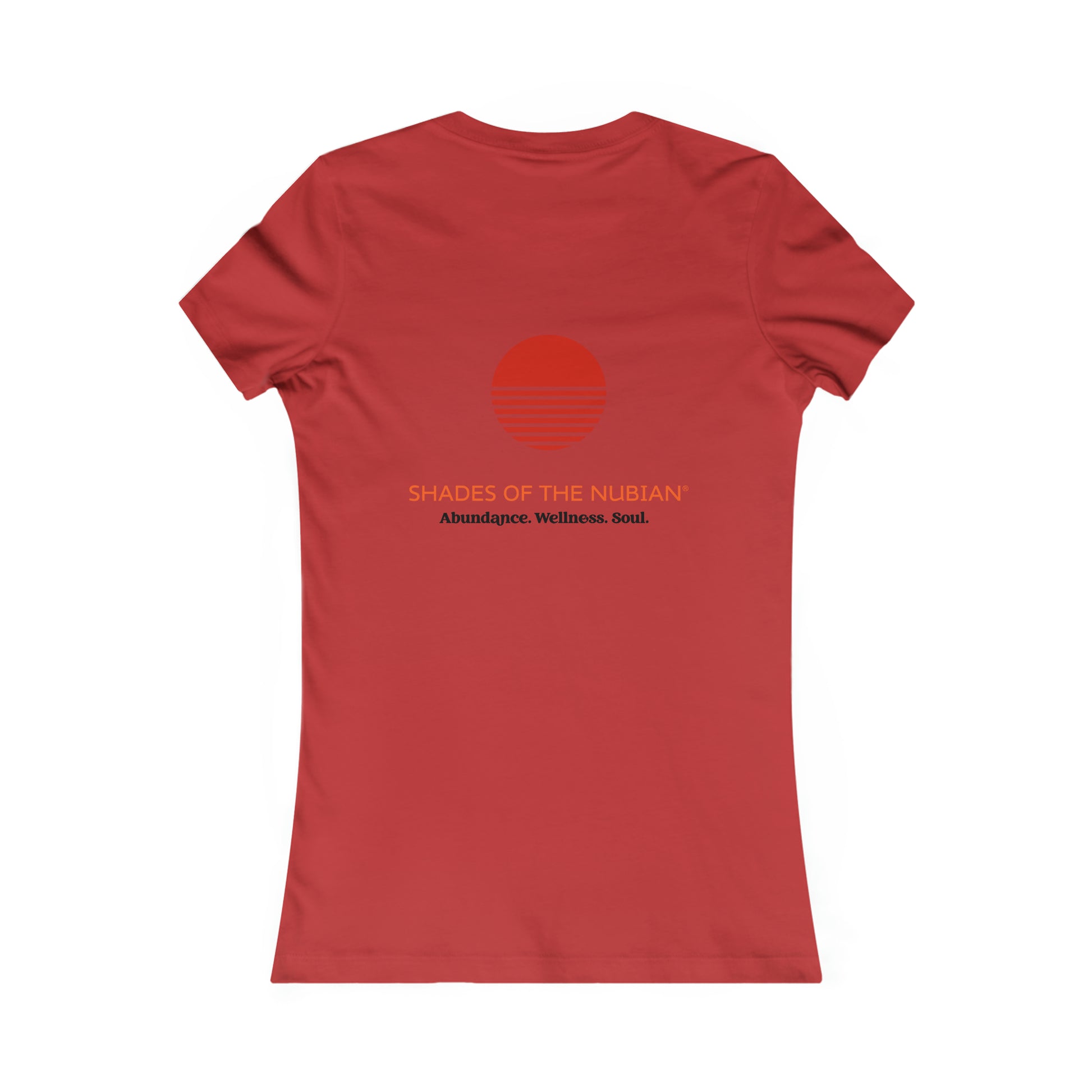 Women's Adinkra Tee, Red. Originating from the Akan of Ghana, Adinkra is a writing system of values and beliefs, practices & proverbs and aphorisms of life. Feminine and comfortable styling. Twill tape on the shoulder stabilizes the back of the shirt and prevents stretching. Red Shades of the Nubian logo on the back.